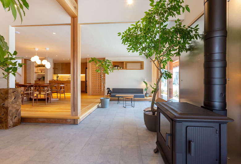 【土間サロン・薪ストーブ・中庭・カーポート】