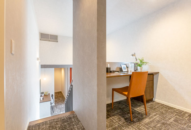 アイ工務店つくば展示場は「縦空間」を活用した間取りとなっており、ハーフ収納・ハーフ吹抜け・スキップフロアなど、アイ工務店の特徴の一つである【2階建て5層構造】を最大限に活用した見どころ満載の家族みんながワクワクするモデルハウスです。