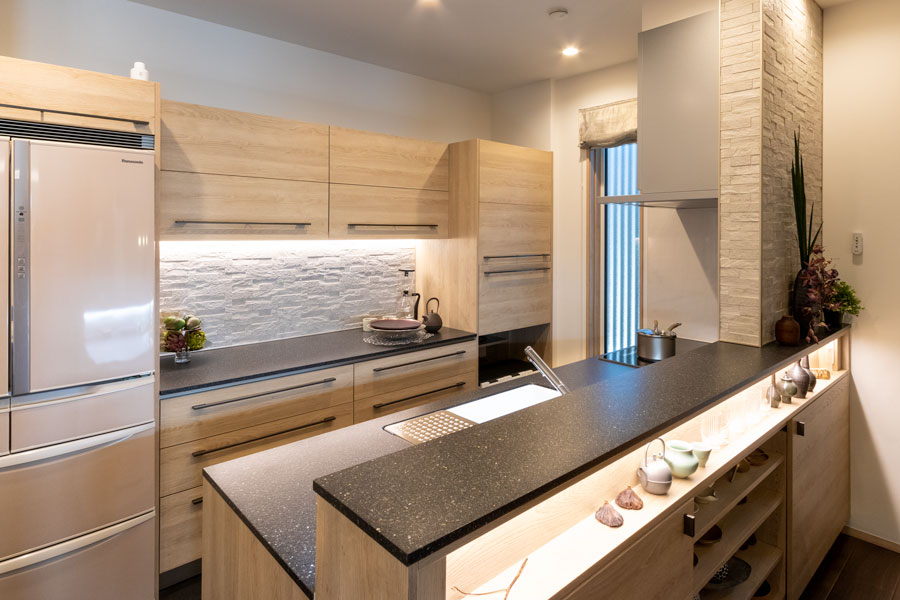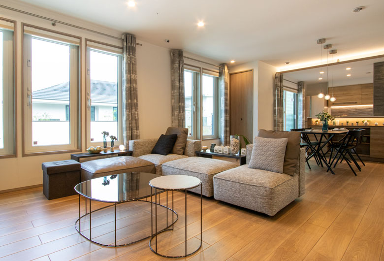 一条工務店の性能と上質なデザインが融合した「グラン・セゾン」。全館床暖房もキレイが続く外壁タイルも標準仕様です。この商品のためにデザイン・設計された、キッチンやドレッサー、収納などの設備は、まさに“機能美”を体現。毎日の暮らしを「おしゃれに」「愉しく」「便利に」してくれます。もちろん、暮らしを快適に安全にする住宅性能も大きな特徴。“ここに住む喜び”を存分に感じられる邸宅です。