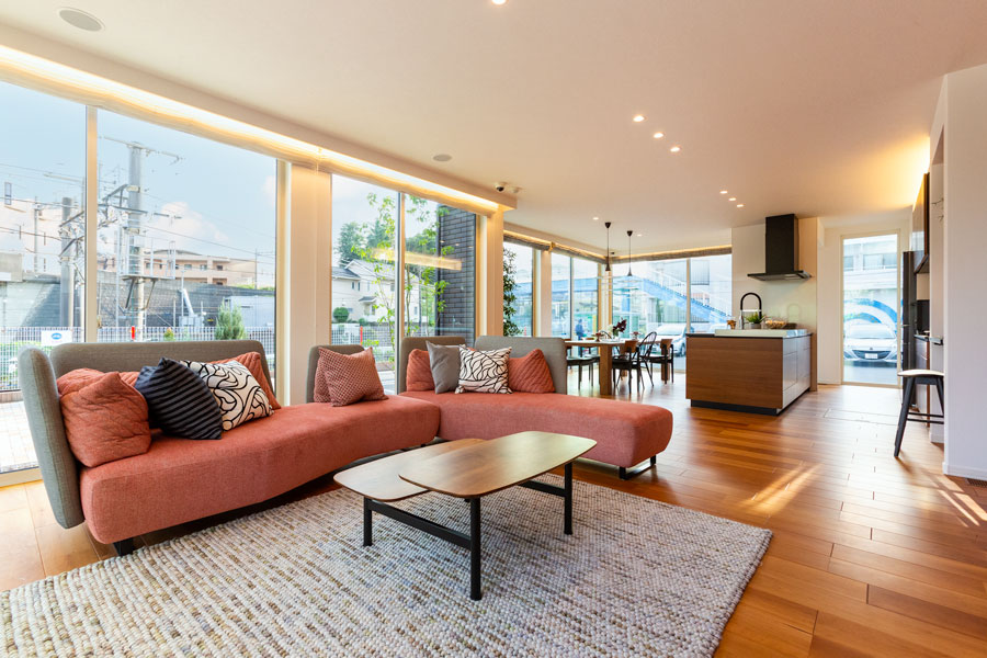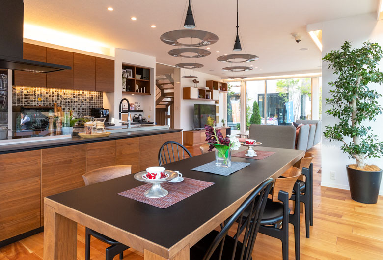 家づくりの大半を屋根のある工場で生産し、60年以上安心して快適に住み続けることの出来るセキスイハイムの鉄骨住宅。ソーラー住宅No.1*の実績を活かし、住んでからの光熱費やメンテナンス費を抑えた賢い家づくりをご提案。明るく開放的で誰しもが寛ぎたくなる、ゆったりとした「おもてなしの空間」を演出しました。