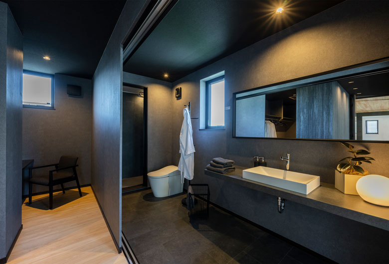 ファサードに大きく張り出す門型(ゲート)をデザインした「ゲート・モダン」な外観です。格子とゲートにより、深く張り出した軒裏を木目とする事で「和」を意識させてくれます。丈夫で耐久性に優れた「国産無垢柱」を採用し、軸組とパネルを融合させた独自のモノコック構造で、内装はリラクゼーション効果や抗菌効果に優れた「檜の家」仕様でご家族の毎日を健やかに包みます。自由度の高い間取りで理想の暮らしを実現した、丈夫で長持ち、高断熱・高気密の家。10年後、20年後を見据えた豊かな生活を実現する住宅です。