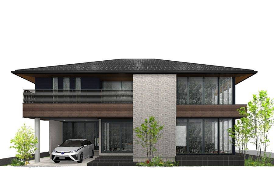 ファサードに大きく張り出す門型(ゲート)をデザインした「ゲート・モダン」な外観です。格子とゲートにより、深く張り出した軒裏を木目とする事で「和」を意識させてくれます。丈夫で耐久性に優れた「国産無垢柱」を採用し、軸組とパネルを融合させた独自のモノコック構造で、内装はリラクゼーション効果や抗菌効果に優れた「檜の家」仕様でご家族の毎日を健やかに包みます。自由度の高い間取りで理想の暮らしを実現した、丈夫で長持ち、高断熱・高気密の家。10年後、20年後を見据えた豊かな生活を実現する住宅です。