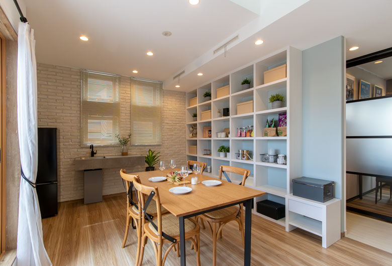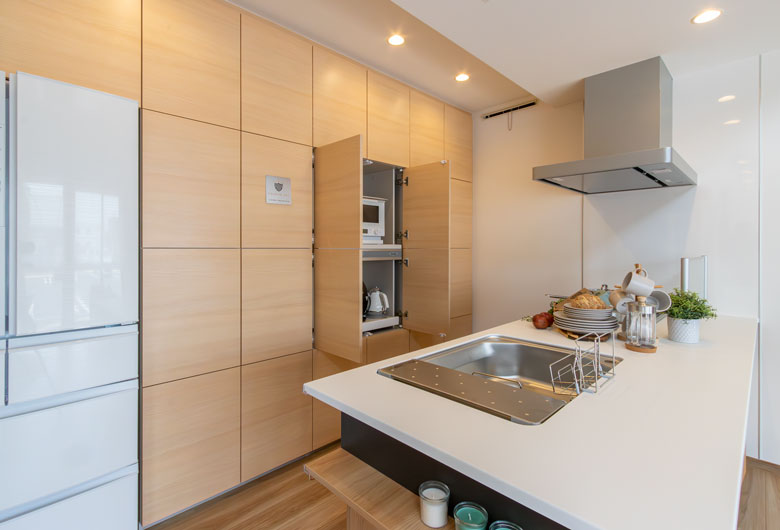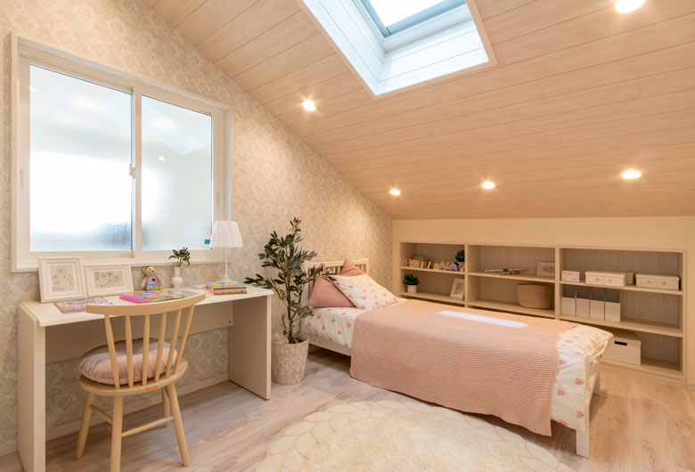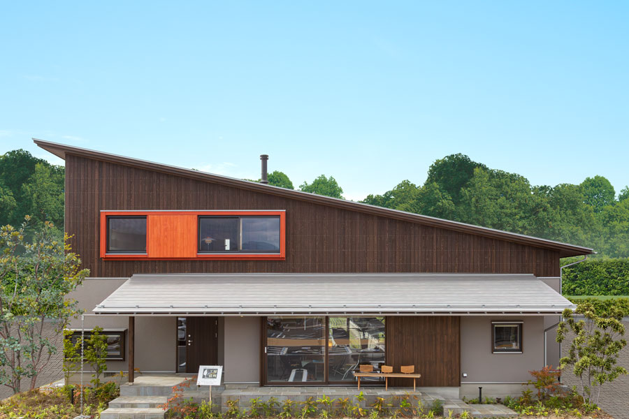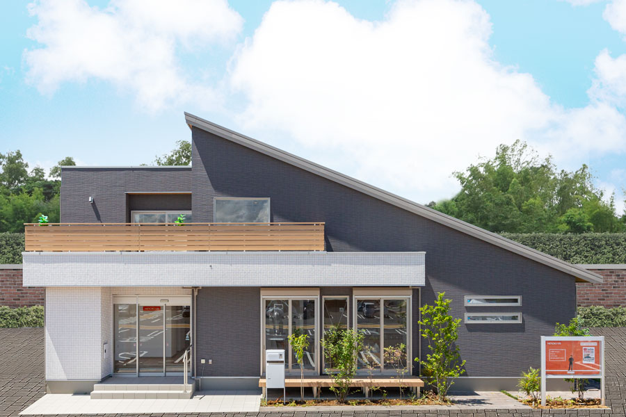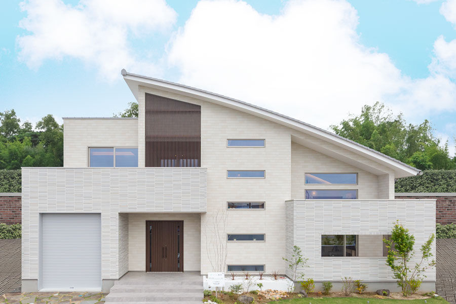 アトリエならではのダイナミックな大屋根と存在感のあるエントランスゲートが特徴的な外観。その大屋根を生かした広い勾配天井が開放的な空間を作り出しています。LDK・水回り・主寝室を同一階に集めた“1階完結型”の間取りで、生活動線に上下階の移動がなく家事が楽になるところも魅力的。2階のアトリエや子供室はライフスタイルの変化に合わせて使い方を様々に変化させられます。これから始まるマイホームづくりと新生活をより豊かにするための具体的なアイデアがたくさん詰まったモデルハウスとなっております。