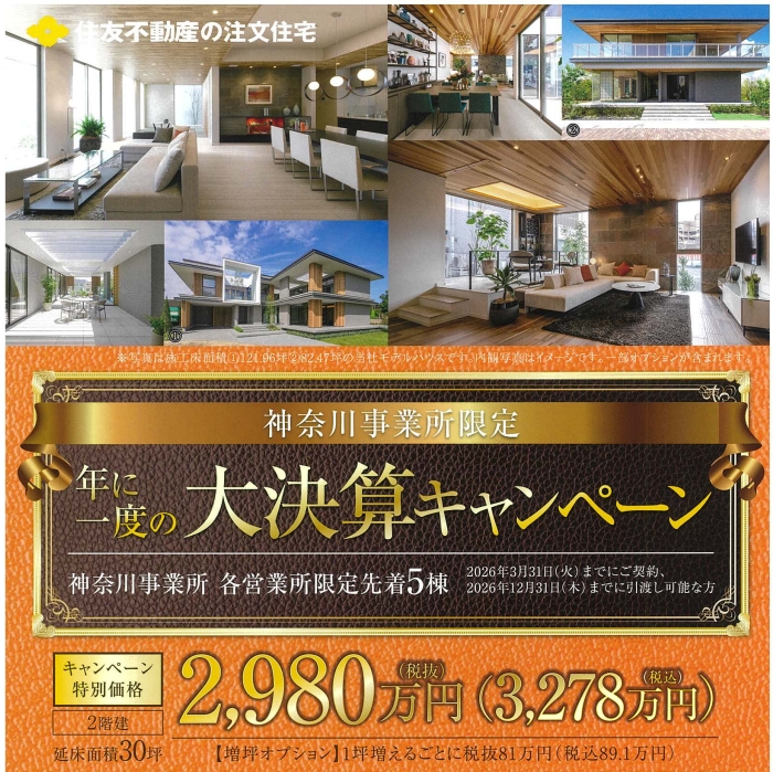 ただいま住友不動産ハウジングでは、年に一度の大決算キャンペーンを開催中です!