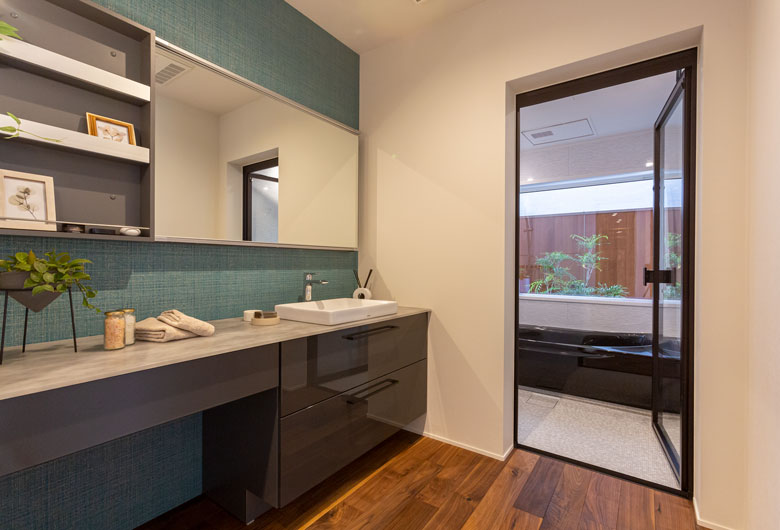 中庭を中心に家族がつながるプラン。シンプルモダンの空間をより洗練された空間。