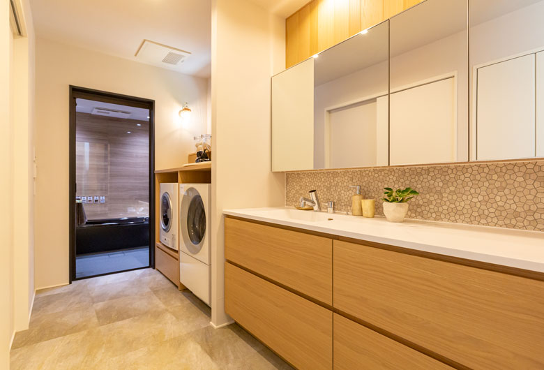 全館空調で室内快適。重量鉄骨で造る圧倒的な広々リビングは、まさに至高の空間です。上質で温かみのあるインテリアは、時間も忘れさせてしまうほどにくつろげます。