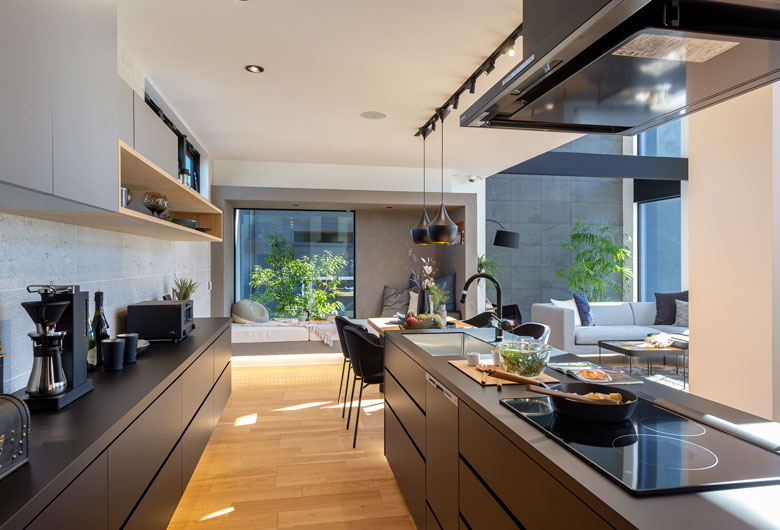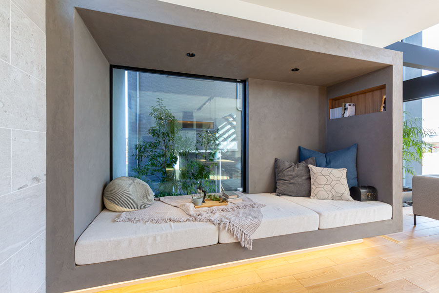 ノーブルホーム日立展示場では、自然の持っている力を活用した幸福度アップやストレス緩和の方法の一つとして注目されているバイオフィリアを取り入れた”バイオフィリックデザイン”を採用。