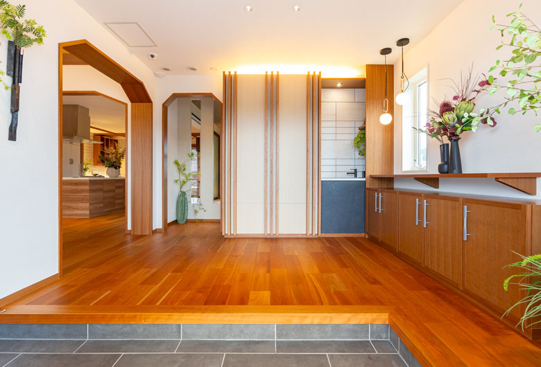 平屋ならではの生活動線の良さ。また、老若男女が生活しやすいバリアフリー設計が特徴。温もりある木造に癒され、優しい自然素材が心を和ませます。間接照明を効果的に使った室内は、柔らかな光で包まれ、リラックスできる空間を演出。生活動線が短いことで家事の負担も減り、自由な時間が増えます。専門スタッフが家づくりに関する相談を丁寧にサポートし、理想の住まいづくりをお手伝いいたします。