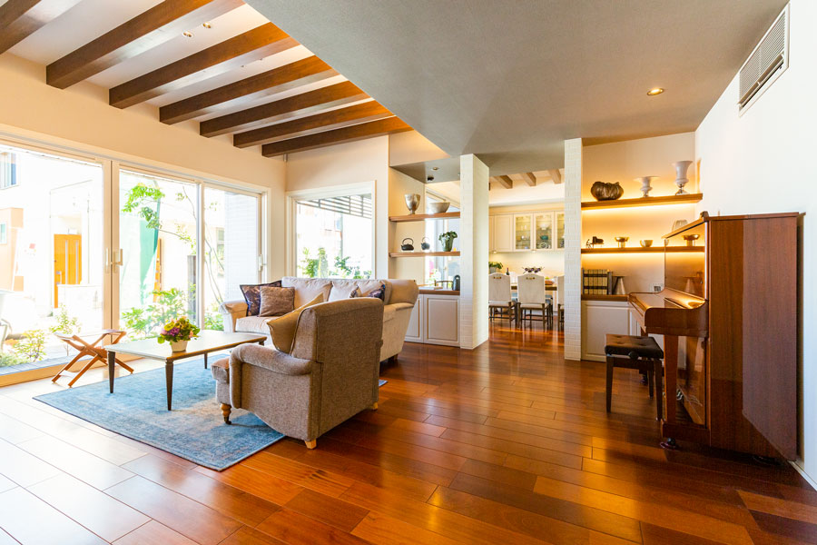 鉄骨住宅同様に構造計算の元、高強度を保ちつつ大きな吹き抜け・勾配大空間を演出した積水ハウスシャーウッドをぜひご見学ください。