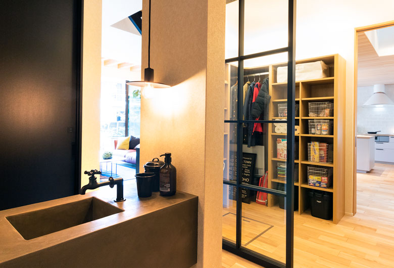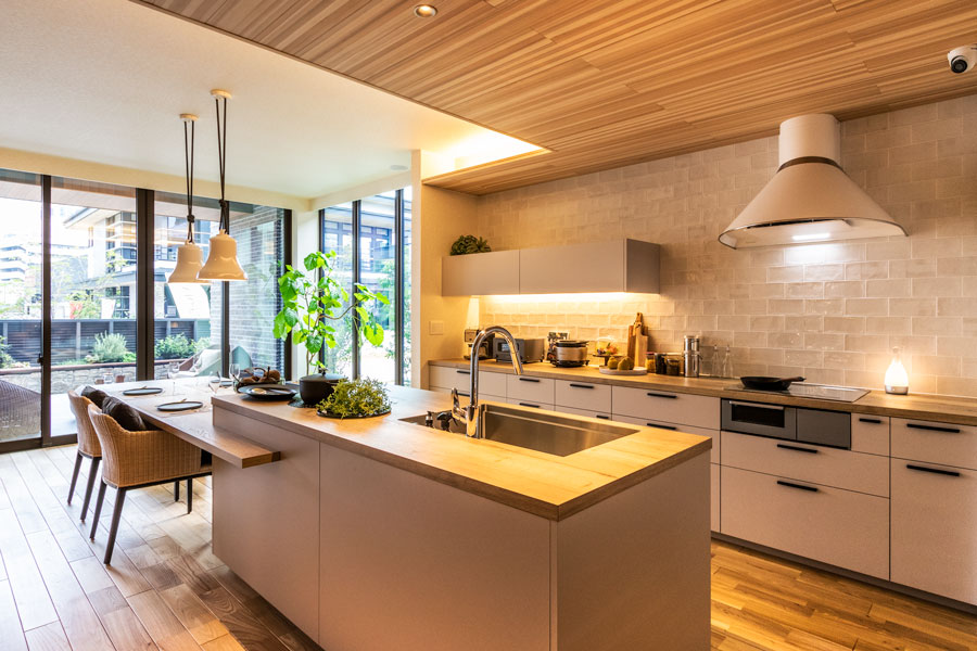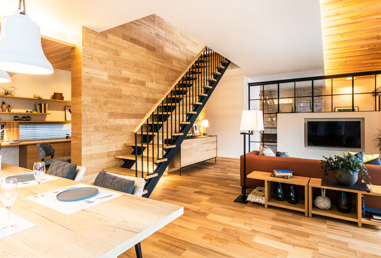 ビッグフレームが実現する大開口・開放感、世界の銘木と天然石が醸し出す高級感とハイセンスなインテリアを設えたワンランク上のモデルハウスです。丁寧な素材選択と照明計画で、何気ない日々の暮らしに、ゆとりを感じる豊かな時間を演出します。共働き夫婦のための家事動線や収納計画。家族の気配を感じる空間設計を是非ご体感ください。