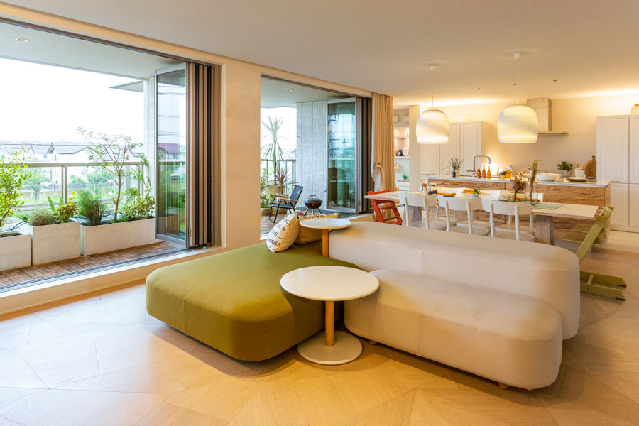 各ダイニングリビングには、へーベルハウスならではの大開口で外とのつながる大人気商品「そらのま」がございます。室内のように使えるオープンエリアのマルチスペースで普段の生活を特別な時間にしてみませんか?