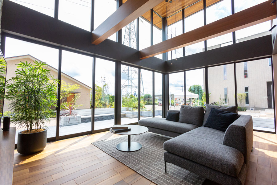 木造住宅の可能性を追求した大空間のLDK、シックモダンで洗練された上質な住まいをご体感下さい。