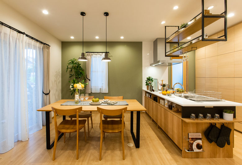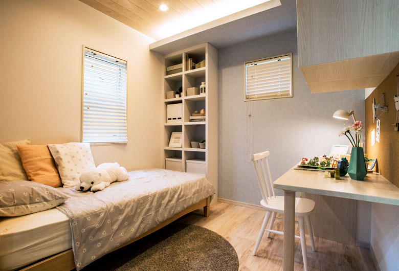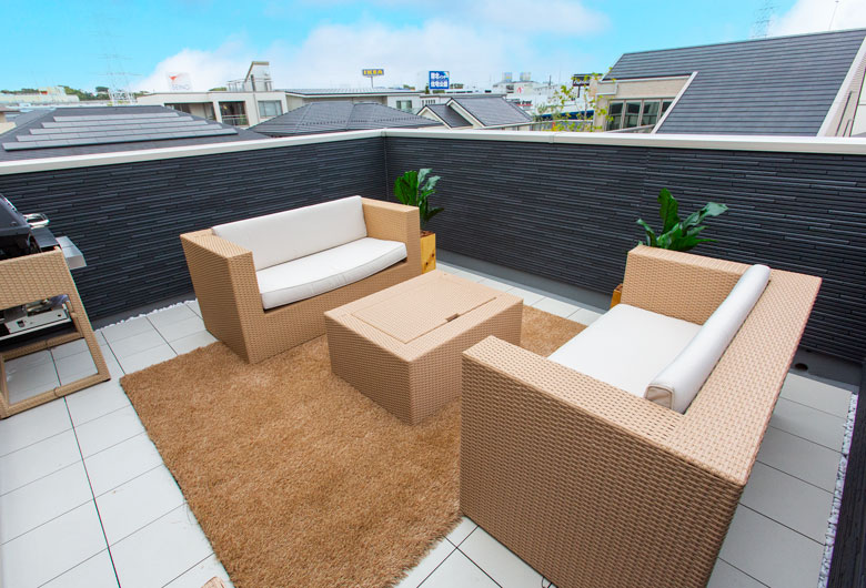 大きな切妻屋根に横格子がアクセントになった都会的な外観。ウッドデッキや庭と繋がる開放的なリビングに対して、格子で目隠しされたバルコニーや小屋裏収納空間を利用したアトリエなど、開かれた空間とプライベートな空間を併せ持つことで、家で過ごす時間を特別で充実したものにします。屋上庭園「青空リビング」はホームパーティーやバーベキューを楽しみながら家族や友人とゆっくり時間を過ごすことができる場所。これから始まるマイホームづくりと新生活をより豊かにするための具体的なアイデアがたくさん詰まった桧家住宅を楽しみながらゆっくりと体感してください。