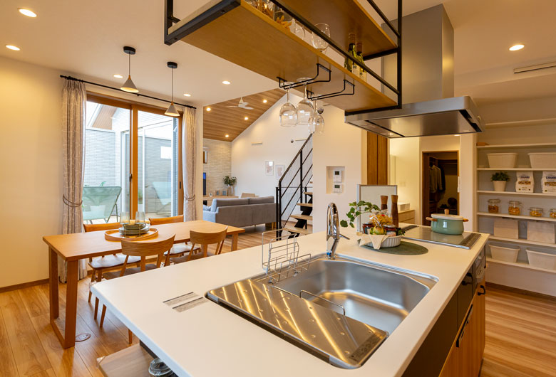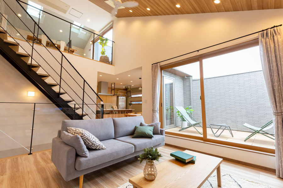 中庭を中心に家族がつながるプラン。シンプルモダンの空間をより洗練された空間。
