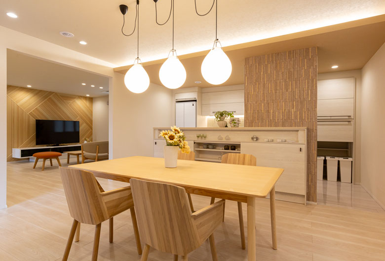 1階は木質をふんだんに活かした、伸びやかな空間が広がります。