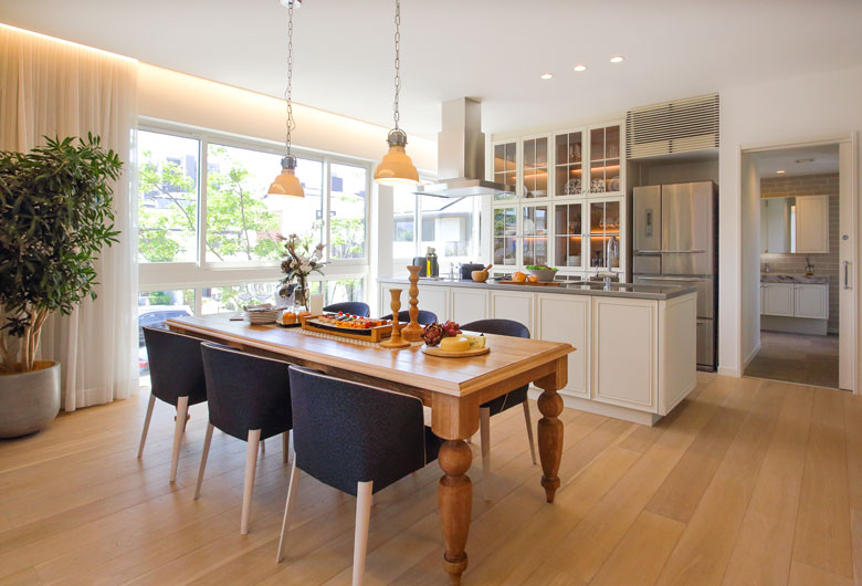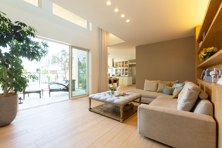 都会の中でスローライフをご提案。2階のスローリビングでは段差の無いフルフラットバルコニーにより外と中の空間の境を無くし、大開口サッシによって外部空間を室内に取り込んだ3階建て住宅における新しいリビングをご提案。バルコニーとリビングを一体的に使い、都会に居ながらにして自然を感じられるプランニングとなっております。その他にもビルトインガレージを実際に採用している全国でも珍しい展示場となっておりますので、是非一度足を運んでみては如何でしょうか。