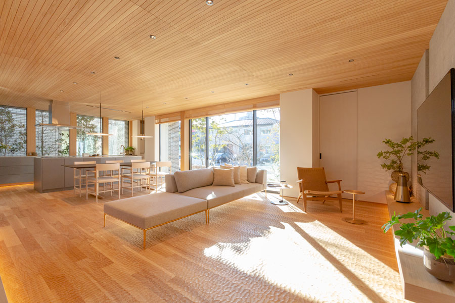 独自の構造で高い耐震性を実現しつつ、木質感と開放感あふれる上質な住まいとなっております。皆様のご来場を心よりお待ちしております。