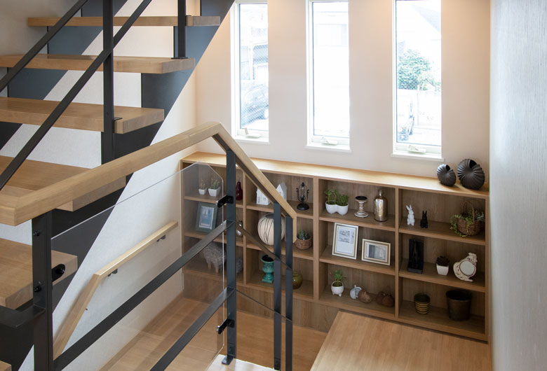 鉄骨3階建ての二世帯住宅モデルです。鉄骨ならではの大空間を設計した独立型二世帯の為、それぞれの生活空間をお楽しみ頂けます。1階は親世帯の住まい、落ち着いた重厚なインテリア、家事動線にこだわった設計、また収納の知恵を実際の空間でご確認ください。2階は子世帯の住まいで、明るく若々しいインテリアです。繰り返す地震に強い「アタックフレーム」と、万一に備え安心を約束する「建て替え保証」を備えていると同時に、柱や壁のない大空間や大開口が可能、さらには天井高、床高の調整で変化に富んだ空間がつくれます。