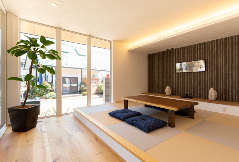 中庭より屋外との繋がりを体感頂ける展示場となっております。
