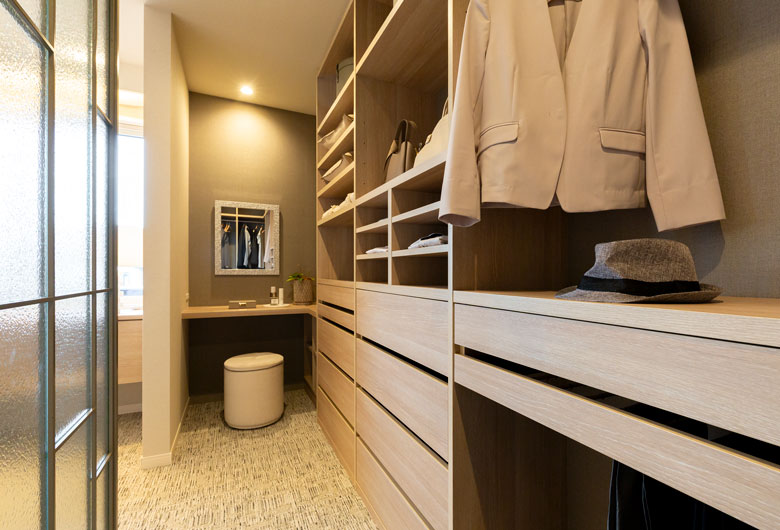 明るい色調の中で実現した新しいラグジュアリーデザインと、内と外を一体に見せる空間設計や、スキップ空間、家事動線など見どころ満載です。