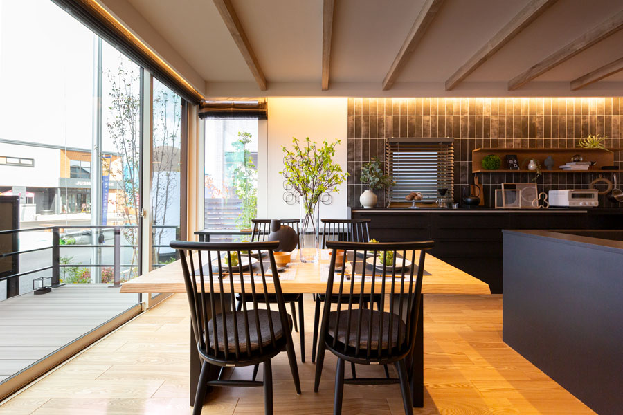 地震や雪に強いだけでなく、大空間・大開口デザインにより、明るく開放的な空間を実現しています。