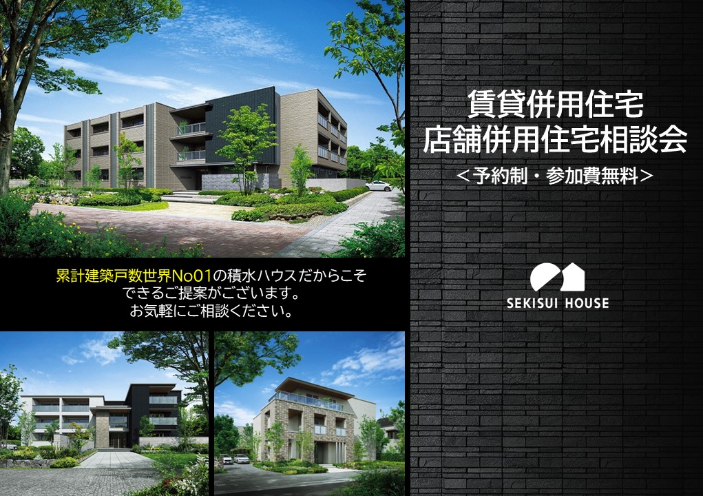 累計建築戸数世界No.1の積水ハウスだからこそご提案できる「賃貸併用住宅」「店舗併用住宅」。