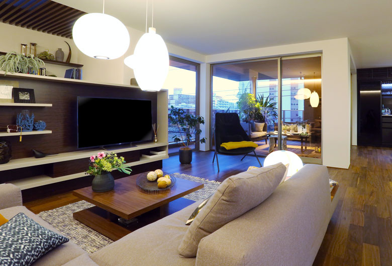 敷地30坪の都市型サイズでありながら、明るく開放的な心地よい大空間をご提案します。段差のないフルフラットバルコニーや当社オリジナルのβシステム構法特有の2方向オーバーハング、キャノピー庇など、敷地を最大限に活かした当社ならではの様々な工夫をご体感くださいませ。