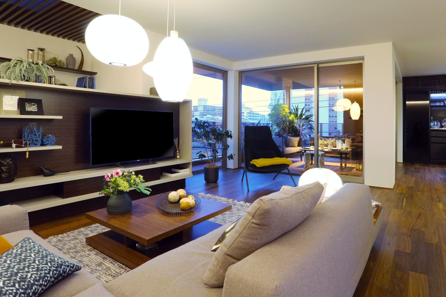 敷地30坪の都市型サイズでありながら、明るく開放的な心地よい大空間をご提案します。段差のないフルフラットバルコニーや当社オリジナルのβシステム構法特有の2方向オーバーハング、キャノピー庇など、敷地を最大限に活かした当社ならではの様々な工夫をご体感くださいませ。