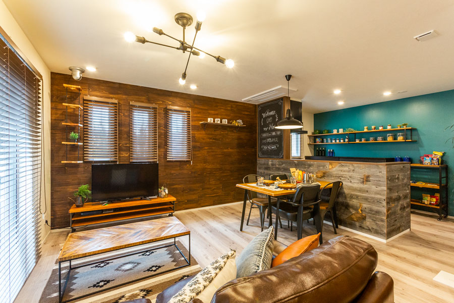 JUST PIA HOUSEの100を越える間取りラインナップの1つをそのままモデルハウスとして建てています。和室付き4LDK32坪で、金額は税込2,068万円。一部DIY提案として、木張りや黒板塗装を施し、これから家を建てる方にとって本当に参考になるモデルハウスをご用意しております。内装は、人気のヴィンテージスタイル。照明まで含めたトータルコーディネートは、実際にお客様が選べる26のコーディネートスタイルの一つとなっています。