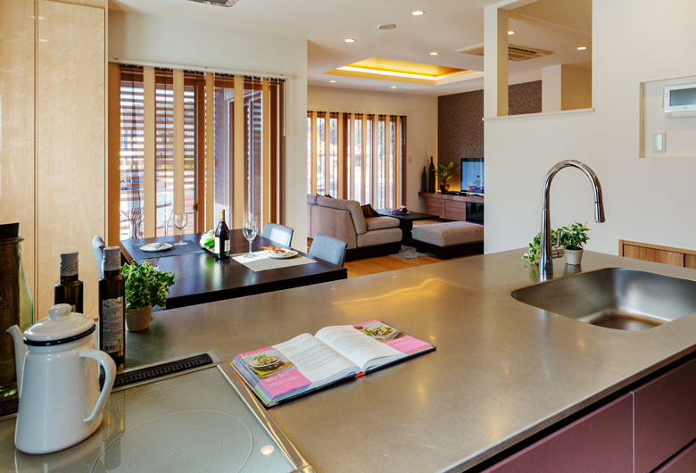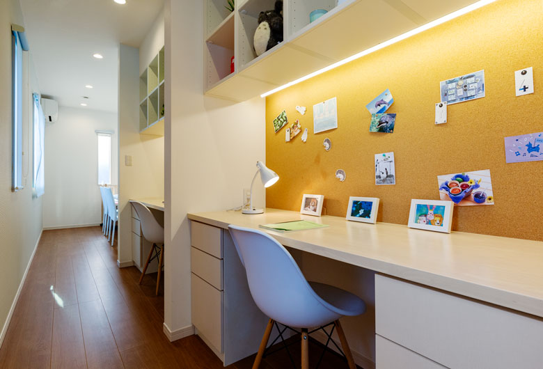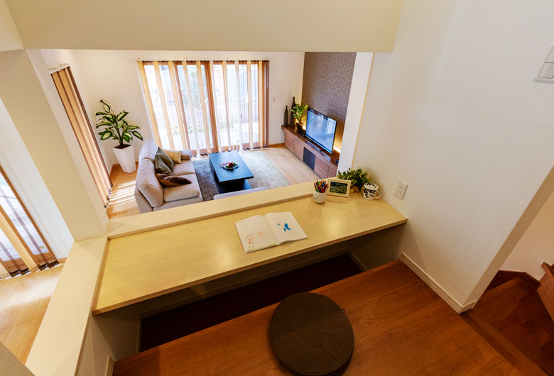 シャープで現代的なデザインの外観。中に入ると対照的に温もりのある空間が広がっています。LDKと2階を繋ぐ接点には、家族の気配を感じられる「コミュニケーションブリッジ」。「将来設計の子供部屋」は小さいうちは大きな遊び場、成長に合わせ仕切る事ができプライベート空間になります。その他ママ専用のスペース「ママズルーム」や大容量でスッキリ収納できる「キッチンウォールキャビ」など、これから始まるマイホームづくりと新生活をより豊かにする為の魅力的なアイデアがたくさん詰まった展示場をご体感ください。
