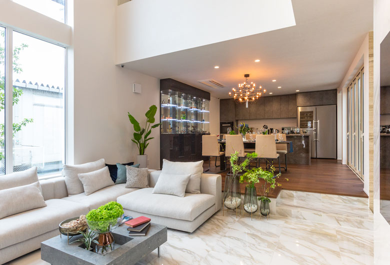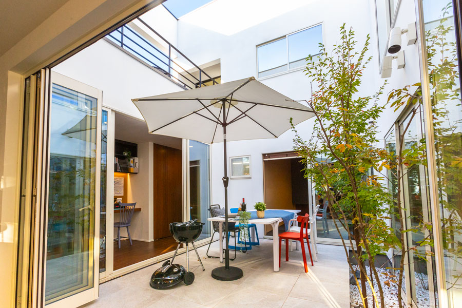 中庭を中心に家族がつながるプラン。シンプルモダンの空間をより洗練された空間。
