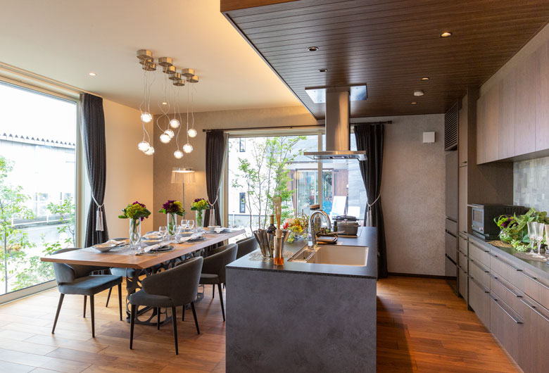 「空気の質」まで究めた、心地よさのプレミアム。強い構造や美しいデザインはもちろん、心地よさの質を高めるために、空気の質にこだわりました。部屋ごとに温度調整可能な全館空調「エアロハス」。真夏・真冬でも、家じゅう快適。花粉・ホコリも気にならならず、0.3㎛の微粒子も99.97%除去。また、それぞれの世帯がストレスなく、四季を通して心地よい二世帯住宅をご提案させていただきます。