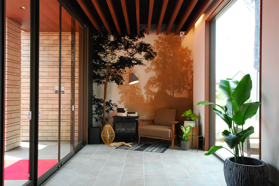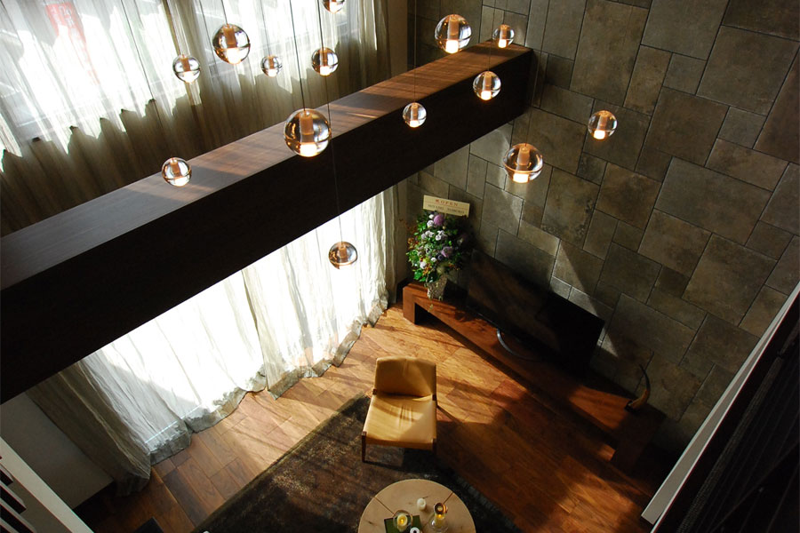 上質な本物素材にこだわった、豊かな時間を育む理想の邸宅。20年後にこんな暮らしをしていたい、そんな憧れを形にしました。1階は、フィーラスが提唱するややクラシックなモダンテイストに、自然素材をプラスした「マウンテンモダン」。北米の山の別荘をイメージしたインテリアは、非日常感の中に安らぎと温かさをもたらします。約40帖の大空間には、星空のような照明と石張りのダイナミックな吹抜けがありますが、全館空調で気温差もごくわずか。2階は、居室ごとにテイストを変え、北欧・南国・日本のイメージを取り入れています。