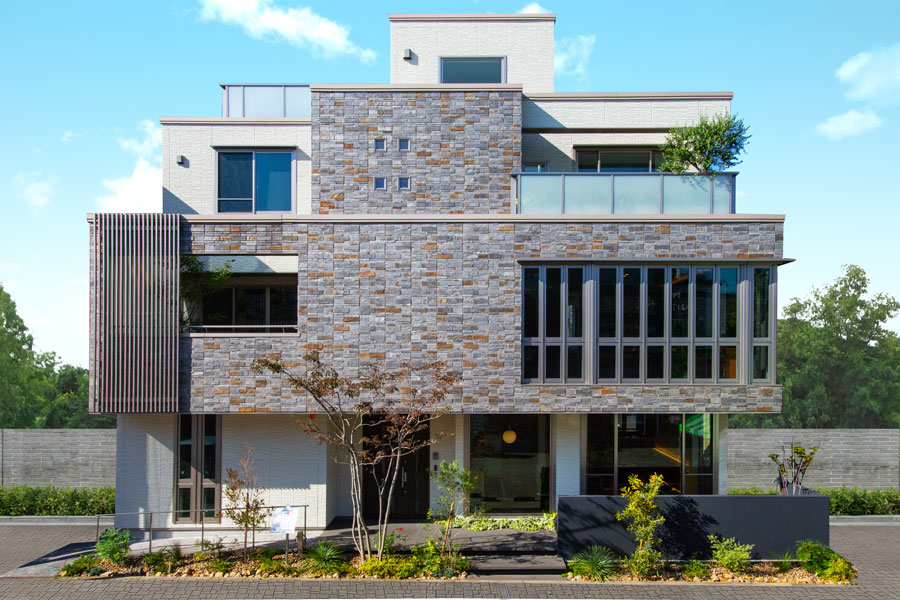 重量鉄骨+ALCコンクリートの頑強な躯体の中にも、温かさと落ち着きをもたらすウッディモダンスタイルの1階リビング。通風、採光、プライバシーを確保したアウトドアリビング"そらのま"と繋がる大空間リビングで、多彩な天井高バリエーションもご体験いただける3階リビング。その他、随所に豊富な収納アイデア、便利な生活導線、ワークスペースのご提案をはじめ、SDGsをテーマに、ZEH仕様蓄電池+ソーラーパネルを標準搭載した最新住宅をご提案致します。