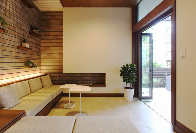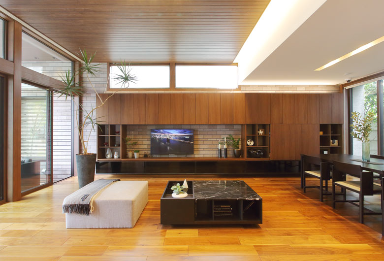 ミサワホームがご提案するひとつ上の暮らし。それは一過性の高性能ではなく、工業化で目指した高性能かつ性能持続性で実現します。一歩先いく高断熱・高耐力・高デザインが心から満足して快適に永く住まう事につながります。住み継がれるくらし、受け継がれるデザインは地球環境と人へのやさしさです。天井高3.0mのリビングは今までにない開放感。外壁や軒と連続した室内壁タイルや天井材は素材を活かした上質な空間を演出します。細部のディテールに拘った品格のあるインテリアスタイルを是非ご体験ください。