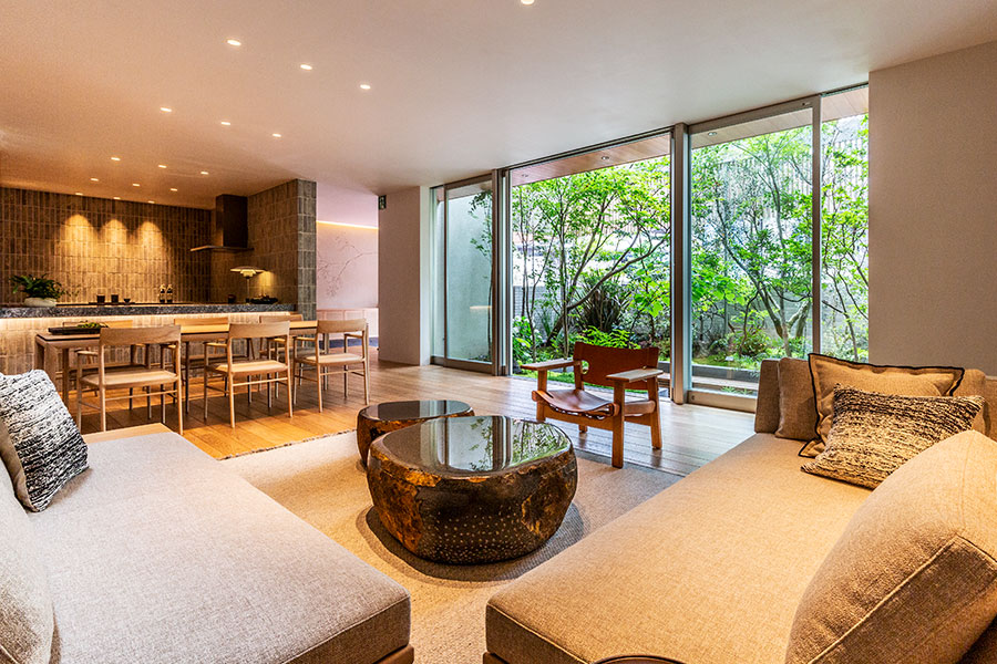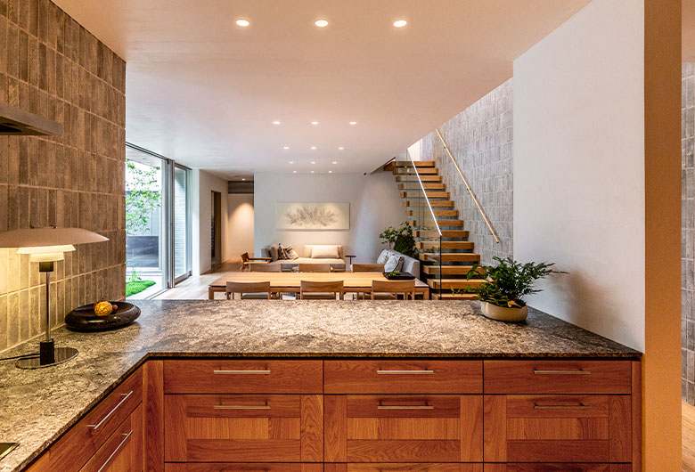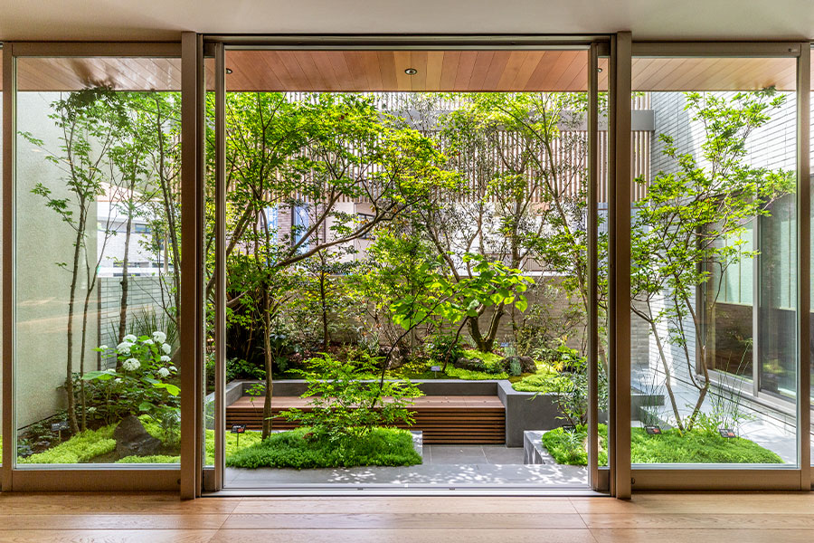 プライバシーの守られた緑豊かな中庭を囲う住宅。
