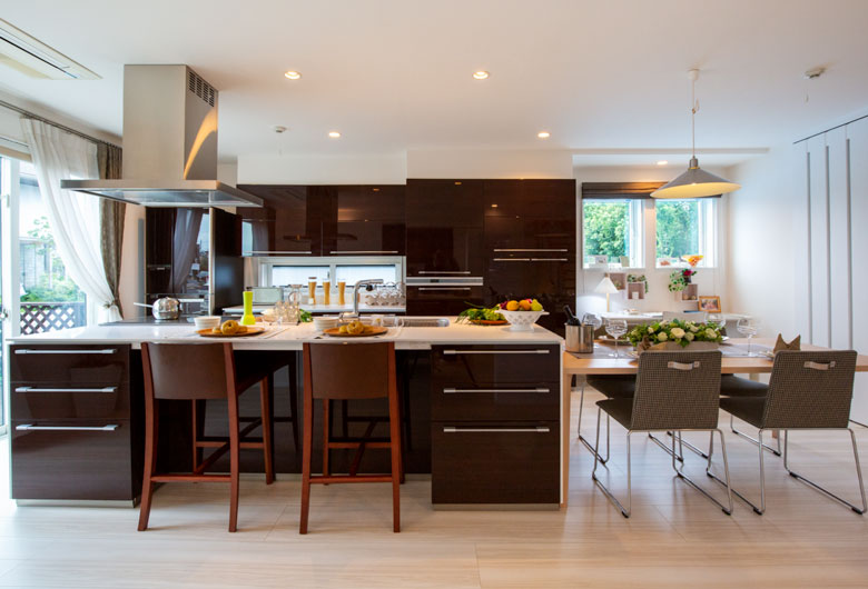 シンプルで清潔感のある真っ白な外観。外壁には、セルフクリーニング機能を備えたハイドロテクトタイルを採用しています。1階LDKは、白を基調とした明るく開放的なインテリア。ブラウンのキッチンが空間を程よく引きしめています。性能においては、国内トップレベルの気密・断熱性能を備え、快適で省エネの暮らしを実現。屋根には、大容量の太陽光発電を搭載しています。性能も設備もデザインも、全てにスマートさを追求したスマートデザイン住宅をご体感ください。