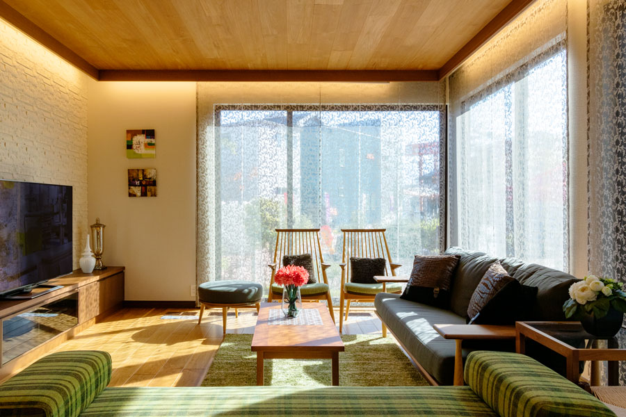 ・大きな窓から差し込む光とナチュラルなテイストが織りなす明るい空間