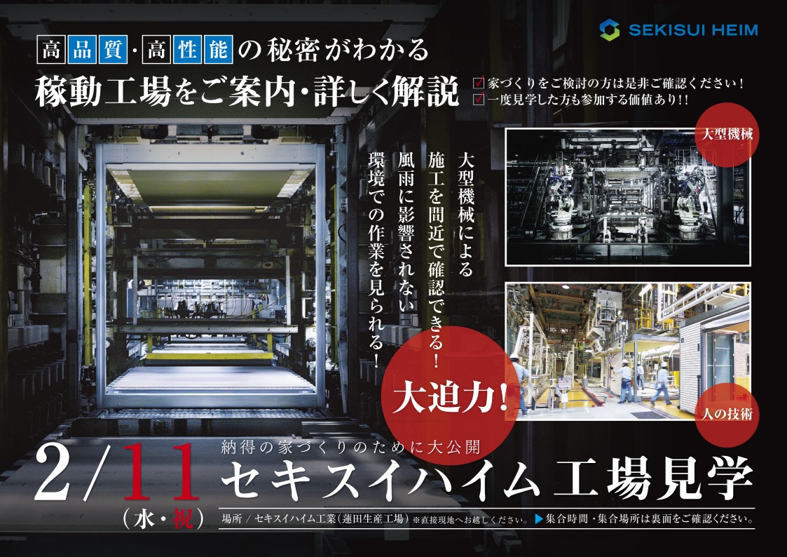 2/11(水・祝)9:30~ セキスイハイム蓮田工場