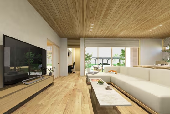 柱のない大空間リビング。家族それぞれに居所のあるファミリースイートをご覧下さい。