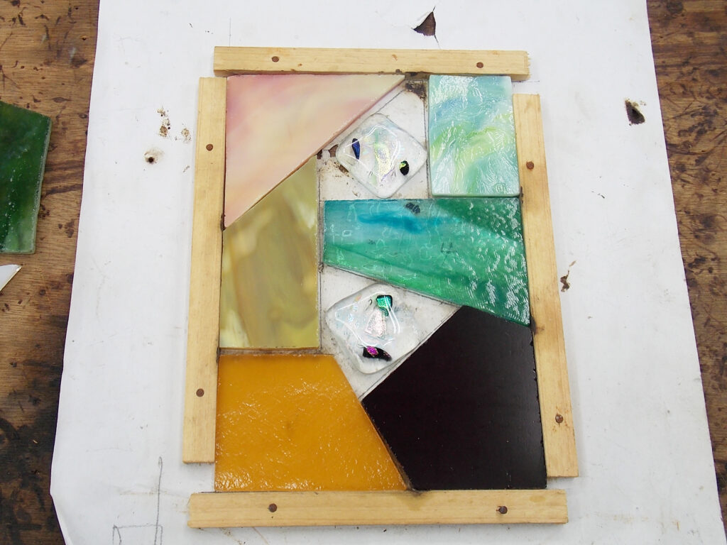 枠がしっかりできていて、番号がついたところに選んだガラスをはめていく