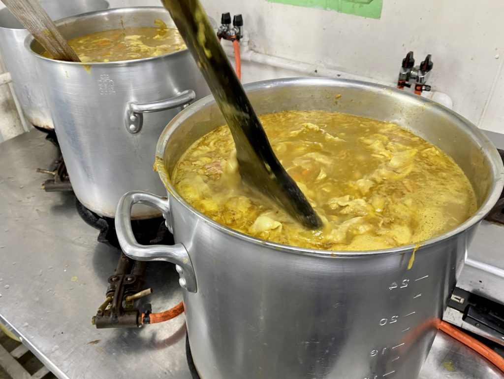 ルーのベースとなるスープを作っているところにお邪魔させていただきました。