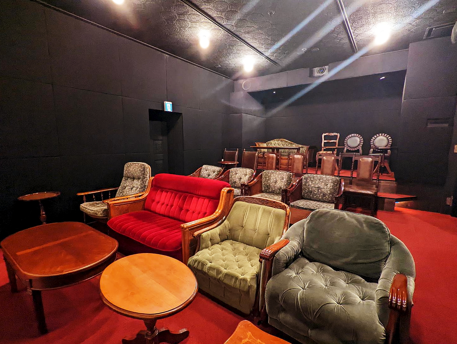 ナンバーがない理由について、竹中さんは「その日の気分や観る映画にあわせて、お好きなお席でゆったりとご鑑賞いただければ」と。どの椅子も重厚感があり、優雅さとアンティーク感満載。まるで大きなリビングルームでくつろぎながら映画を観ている気分になれますよね。こんなプライスレスな空間が味わえるのもシネコヤならではの魅力といえそうです。