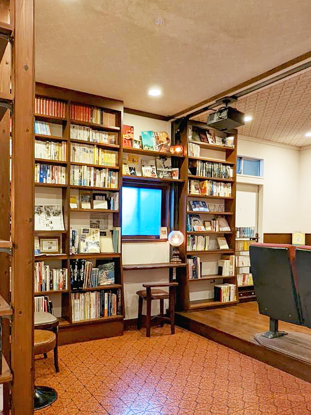 懐かしさがにじむシネコヤの図書室には、壁一面に小説やエッセイ、懐かしの映画雑誌や写真集などが並びます。その数なんと約3,000冊。これらは竹中さんが選び抜いたもののほか、寄付を受けて集まった書冊。「本は子どものころから慣れ親しんだもののひとつです。生活の中に本がある豊かな時間をお届けできたら嬉しいです。映画同様、パンを食べながらお気に入りの本をゆっくりと満喫してくださいね」と話す竹中さん。ここで上映までの待ち時間を過ごす人や、1日どっぷりと読書に浸かる人など、使い方は人それぞれ。その日の予定や気分にあわせて、思い思いに利用できます。なお本の貸出しはしていないので、館内でじっくりと読んで帰りましょう。