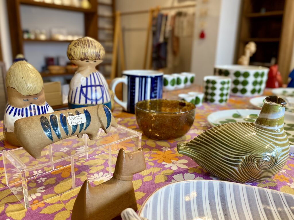 北欧ヴィンテージを中心に、日本製やアジア製などお店のテイストに合う商品がディスプレイされています。