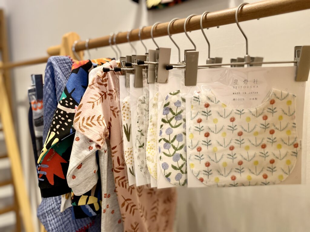 お友達から出産祝いにこちらのスタイをプレゼントしてもらったそうで、この日も別柄を堀口さんと一緒にセレクト。地元のみなさんに寄り添い、立ち寄りやすい雰囲気を感じられたひとコマでした。