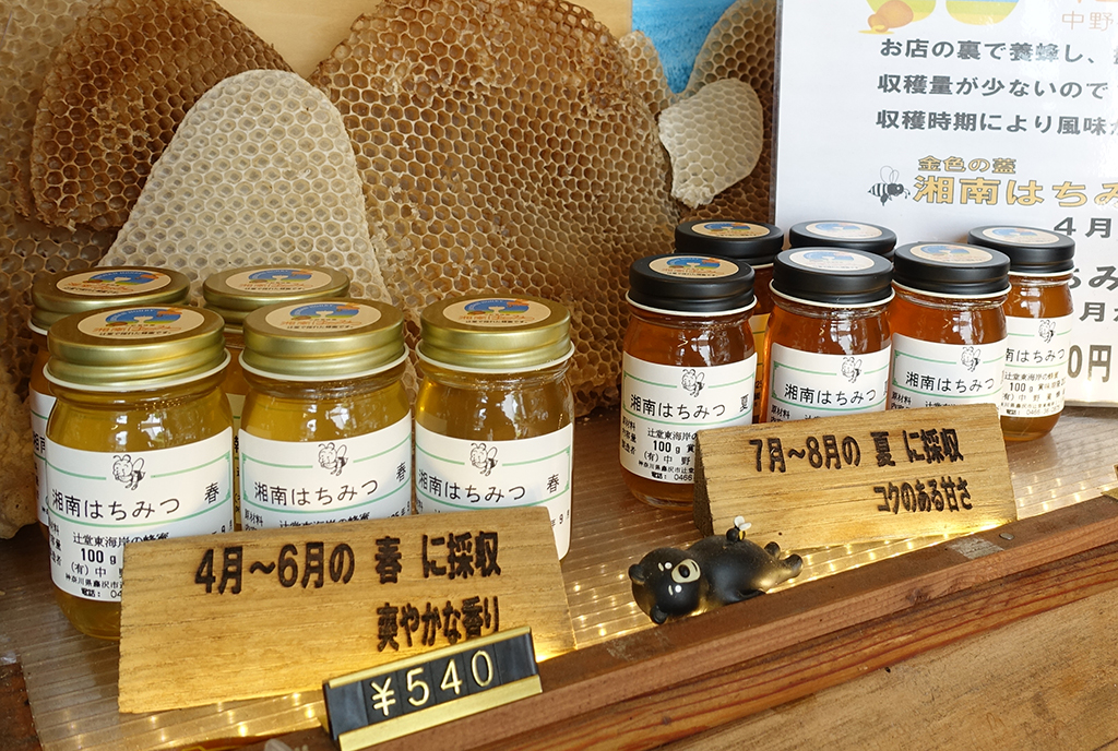 当初は店頭に並ぶハチミツの種類は少なかったものの、父の代からラインナップを増やし、4代目となった中野さんが新たな湘南の名産品を目指して「湘南はちみつ」の採集に着手。店舗裏側のベランダに5つの巣箱を設置しました。「畜産業に分類される養蜂家として、近隣にご迷惑をかけることがないよう管理しています。もちろん、ミツバチの群れが巣箱を抜け出して、新たな場所で巣作りをすることはありません」と断言できるのは、代々の養蜂技術や知識に加え、日々真摯に向き合ってきた経験の表れです。「湘南はちみつ」が誕生して10年以上たった今では、日常使いや地元ならではの手土産として選ぶ方だけでなく、ハチミツ採集に適した花を自宅の庭に栽培される方もいるなど協力的。ミツバチが花から花へ花粉の媒介をするように人と人との交流が息づいています。
