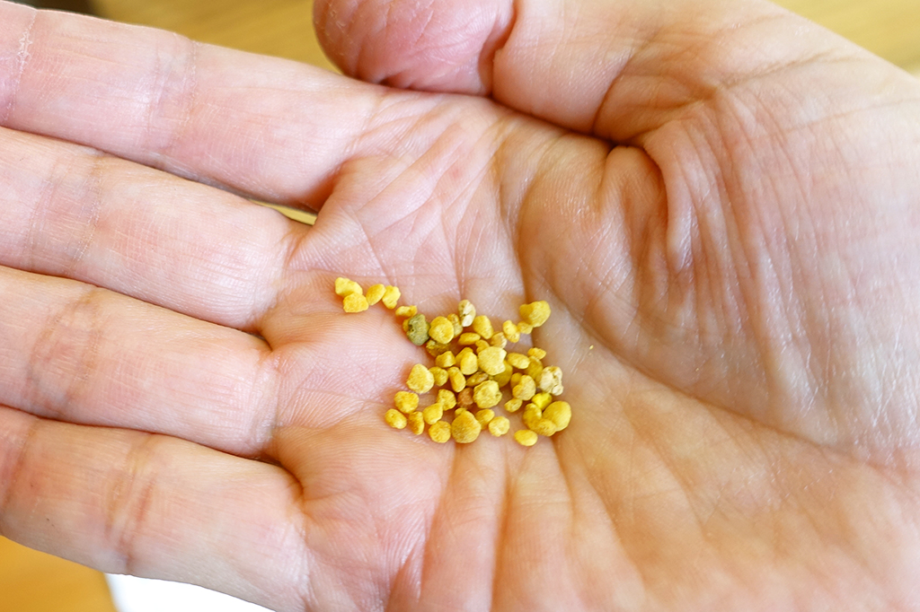 ミツバチたちが一生懸命作った、ちょっといびつな形の「ビーポーレン」(スペイン産)
