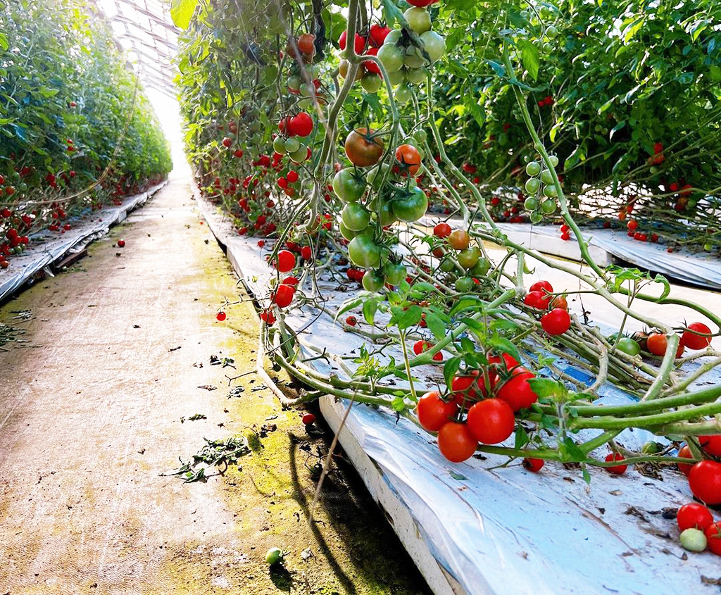 夏野菜のイメージがあるトマトですが、「湘南佐藤農園」のフルーツトマトが最も甘くなるシーズンは1月~2月ごろ。周辺のトマト農家さんも12月~6月ごろが最盛期です。というのも、藤沢市は“冬春トマト”の国指定産地として、このシーズンに多く出荷されているから。近年では、バラエティに富んだ品種が生産されたりと、各農家さんが切磋琢磨しています。佐藤さんが農業を受け継ぐとき、「もっと美味しいトマトを作りたい。それなら根本となる土壌から変える必要がある」と行きついたのが、「アイメック農法」です。これは特殊フィルムに根を張らせて、最低限の水分と養分で植物本来の生命力を引き出し、栄養価や美味しさを高める新しい農法。一般的なトマトの糖度は4~6度と言われますが、佐藤さんのフルーツトマトは最盛期で9度にもなります!