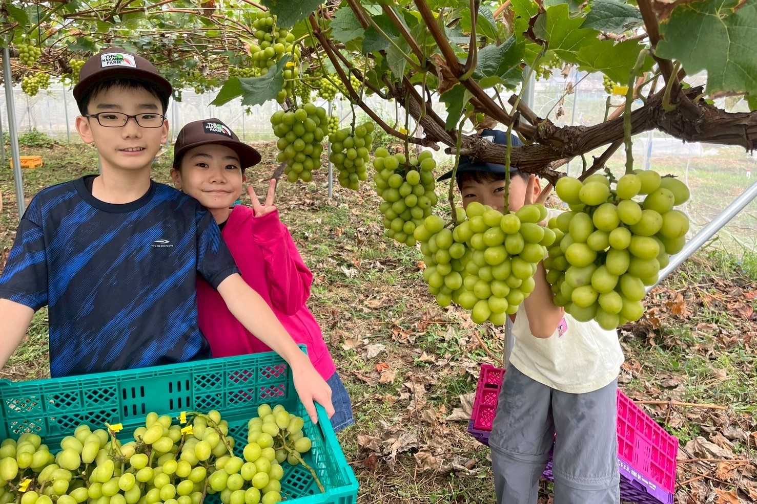 一房一房丁寧に育てられたシャインマスカットを自分の手で収穫してみよう!
